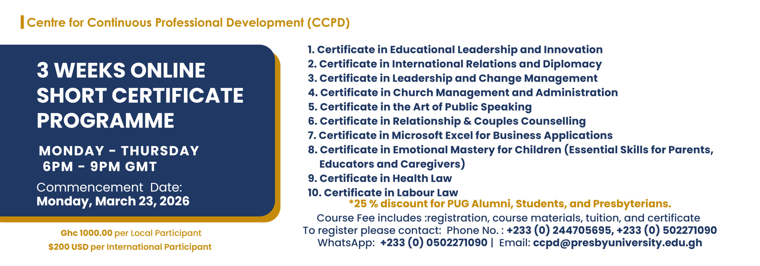 The Presbyterian University, Ghana (PUG), Centre for Continuous Professional Development...